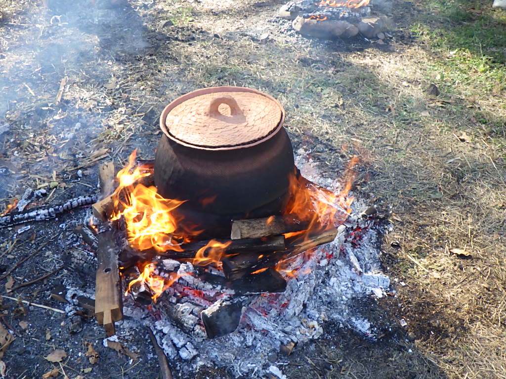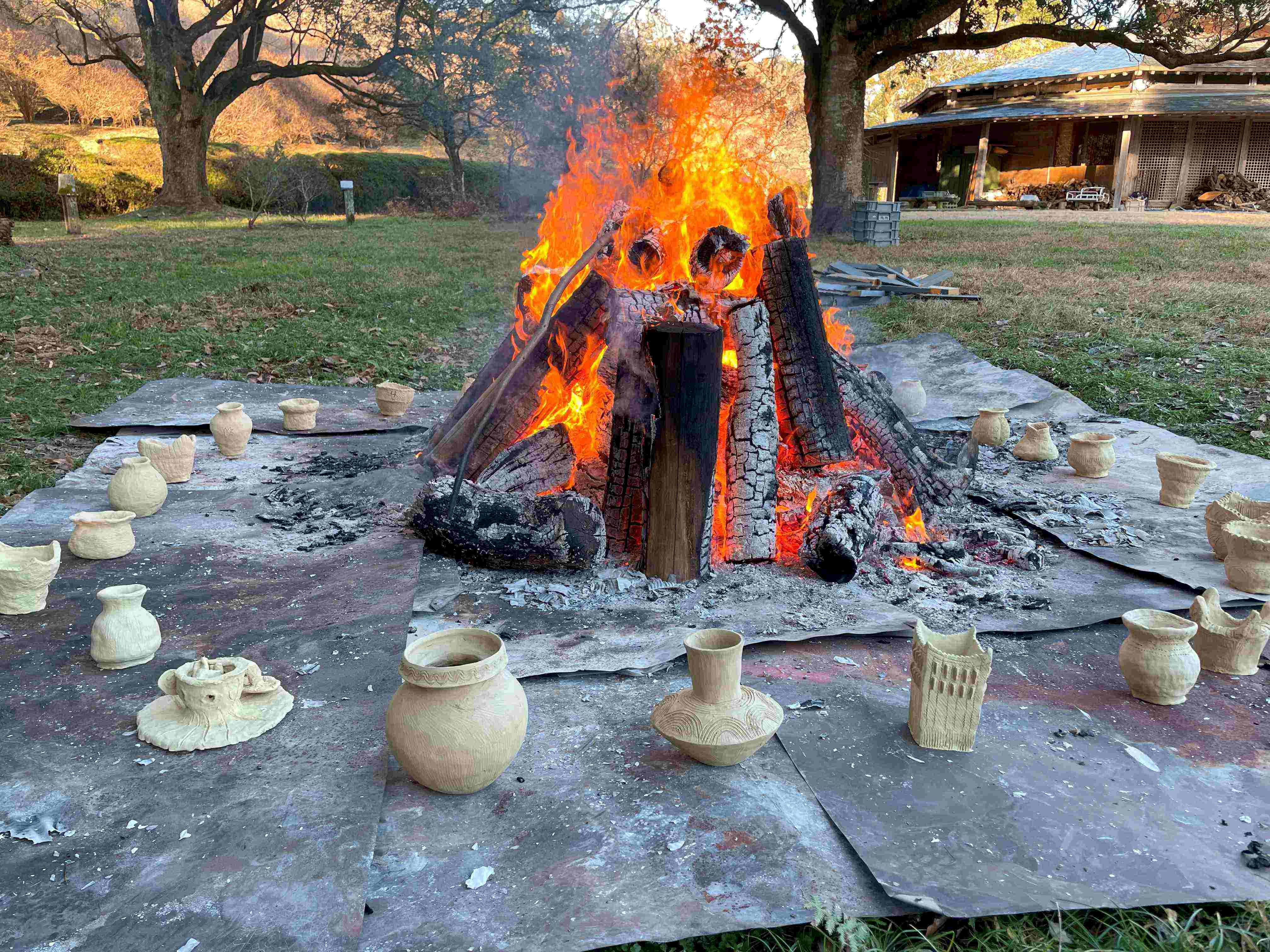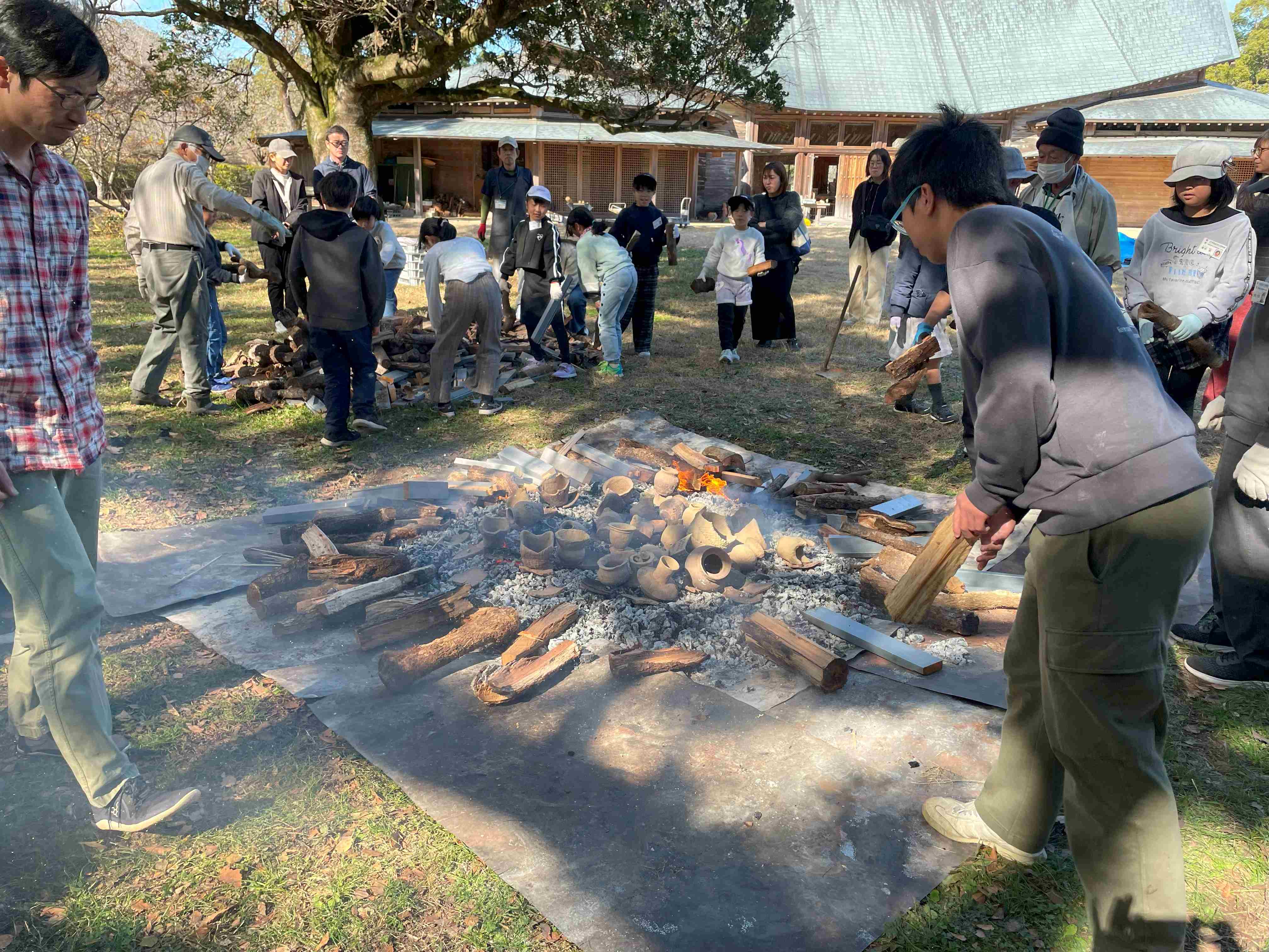 土器の野焼きでは、前回の活動で作った土器を午前8:00~午後2:00までじっくり焼き上げました。